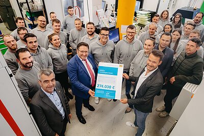 Mit diesem Förderzuschuss beteiligt sich der Freistaat Bayern gezielt an Investitionen in den Ausbau unserer Infrastruktur sowie die Erweiterung unserer Fertigungskapazitäten - konkret umfasst dies die Anschaffung mehrerer Maschinen samt Installation und Grundausstattung sowie die Errichtung eines Messraums.